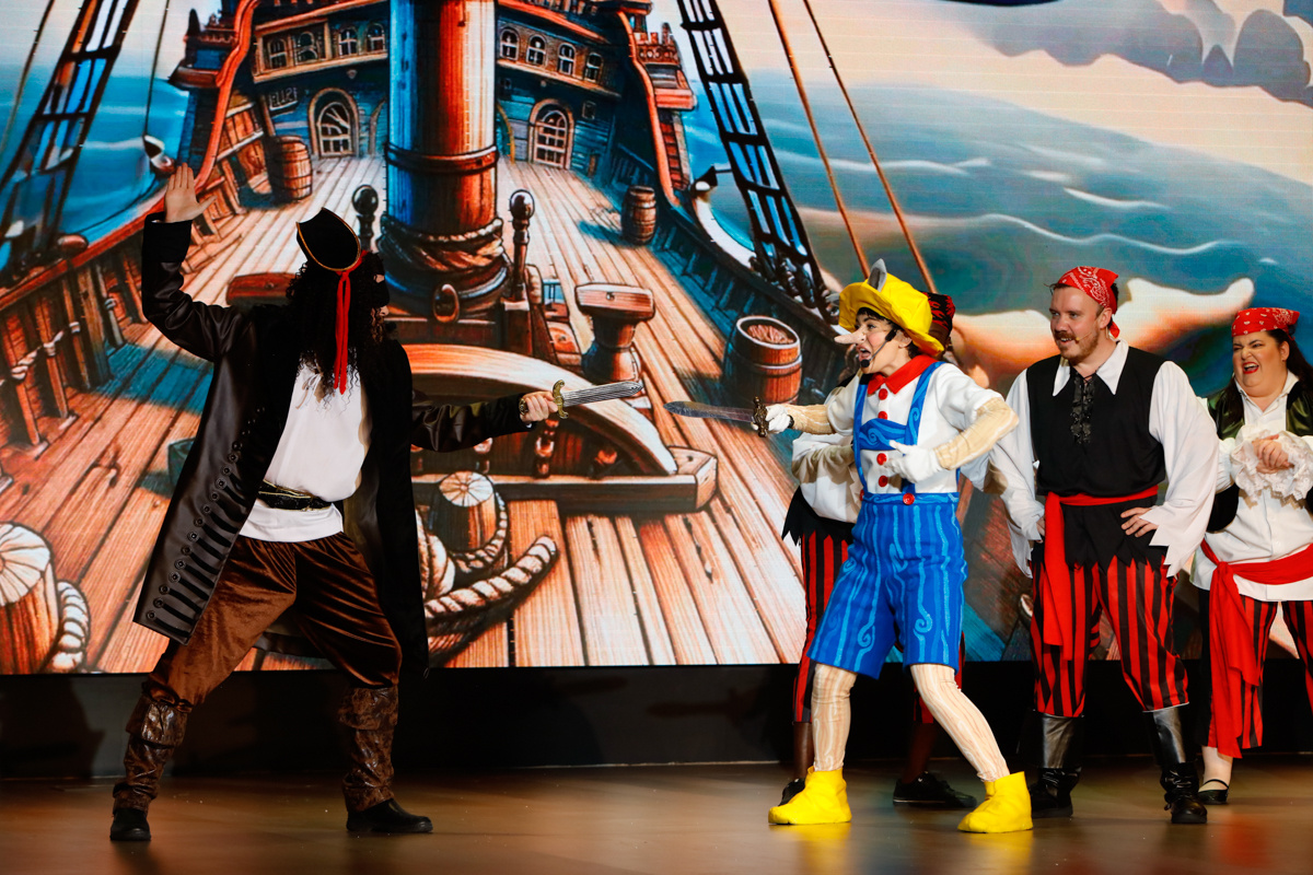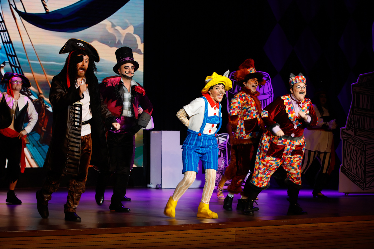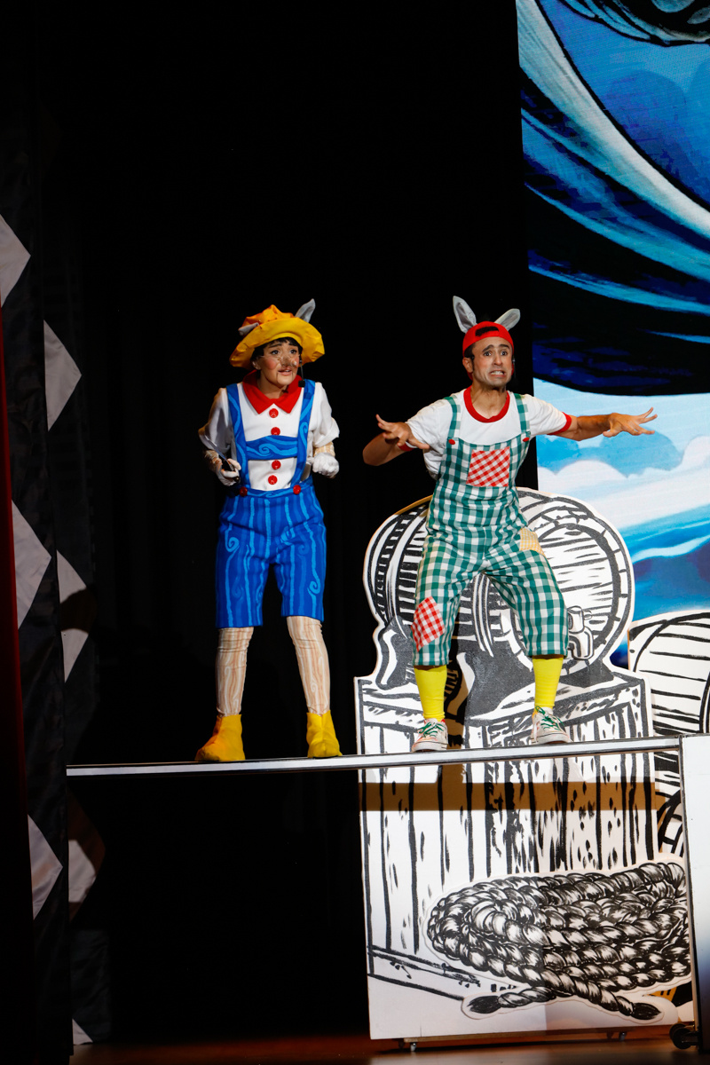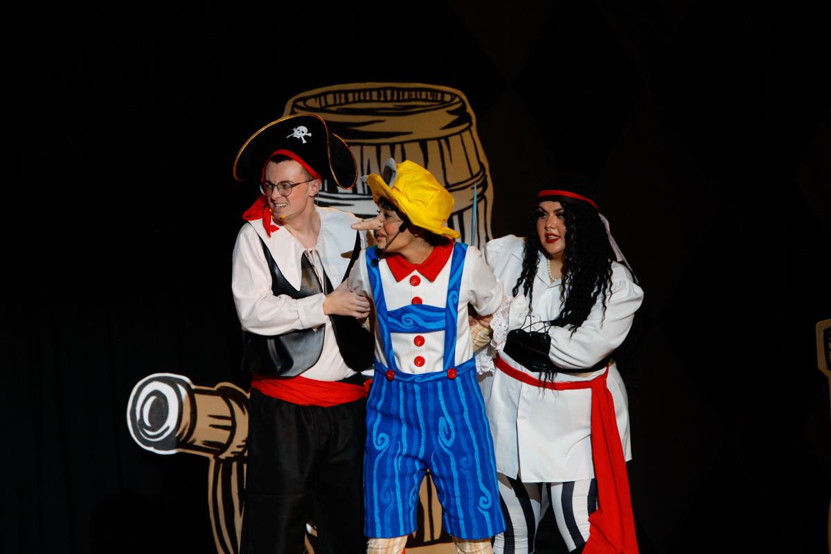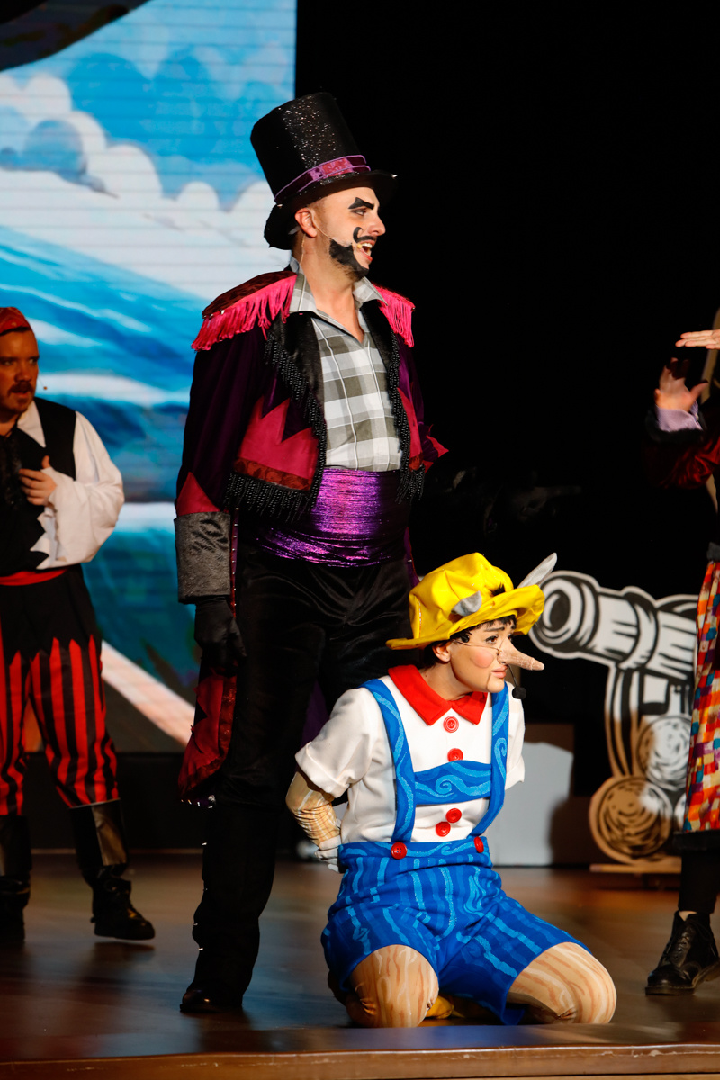 “Pinocchio” written by Tim Waddell and directed by Bridget Everett starred Ellie Smith as Pinocchio, Joffrey Erasmus as Stromboli, Yousef AlObaid as Lampwick and Rachel Simmons as Blue Fairy, with Dave Heslip as Jiminy Cricket, Tim Waddell as Mamma Mia, Karl Rawsthorne as Captain Blackeye and Diego Barcenas & Taralyne Hillegonds as Fox & Cat.